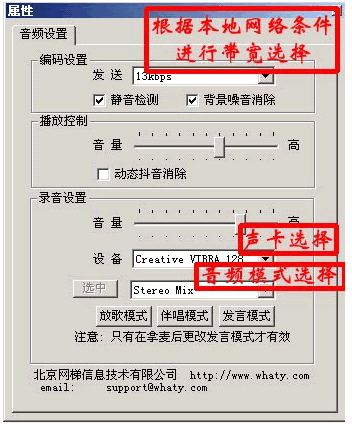 当网络状况影响声音输出时,可以将默认的“发送”参数13kbps调至6-11kpbs。