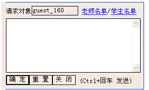 - 选择交流对象,可以通过左键单击页面右侧的名单列表中的某一同学或老师的登陆名实现。