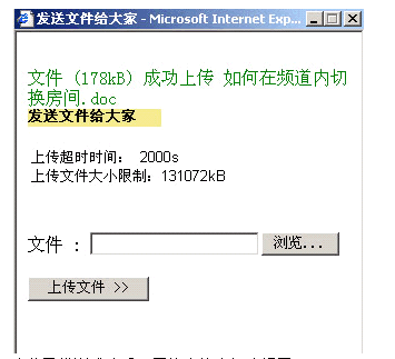点击浏览,选择需要发送的本地文件。点击“上传文件>>”即可将文件传送给在线的发送对象。