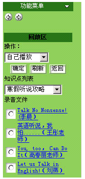 点播台中保存了大量的听力材料。用户可以选择点播台资料库中的听力材料。播放时,功能显示栏最上方会同时显示播放器控制板。